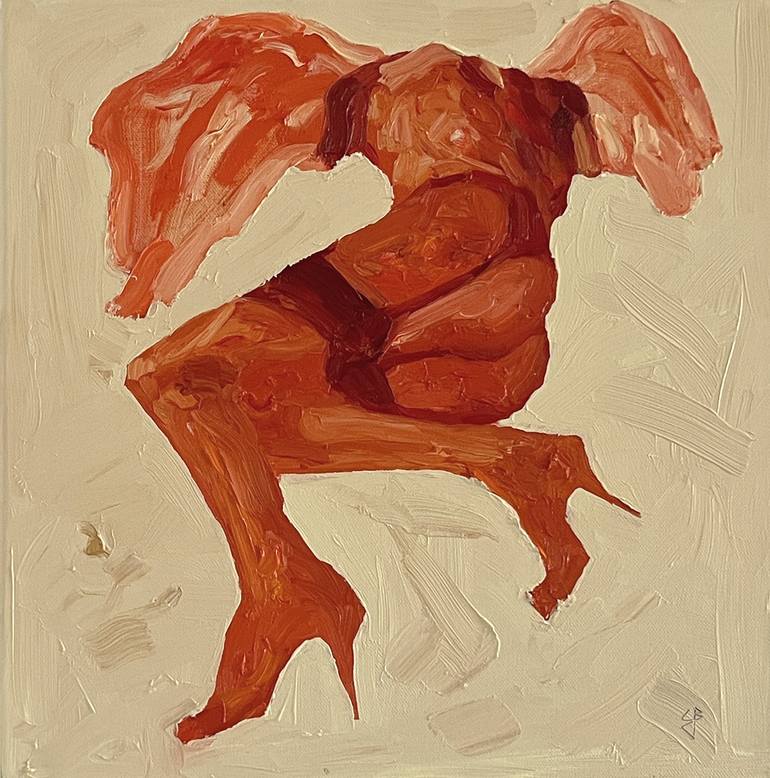 red figure woman, broken angel wings, in lingerie .... ... .. ... attractive woman, red dark angel wings, girl, exciting, intimatacy, red woman, sexy lingerie, flash way, sensuality, art lovers, art collectors, minimal, figuraitve, woman in red, very best and unique, original artwork...