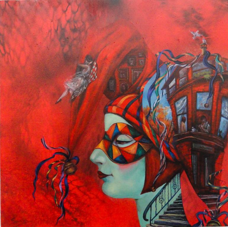 This is an acrylic painting on canvas finished with a layer of lacquer. Ready to hang. The painting was inspired by one of my dreams and the Brooklyn neighborhood where I live.