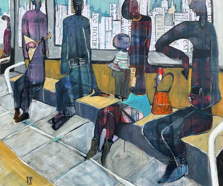 Red Kelly Bag is an original oil & mixed media on canvas by Russian figurative artist, ILYA Volykhine. Travelling from A to B and all the things we see in between.