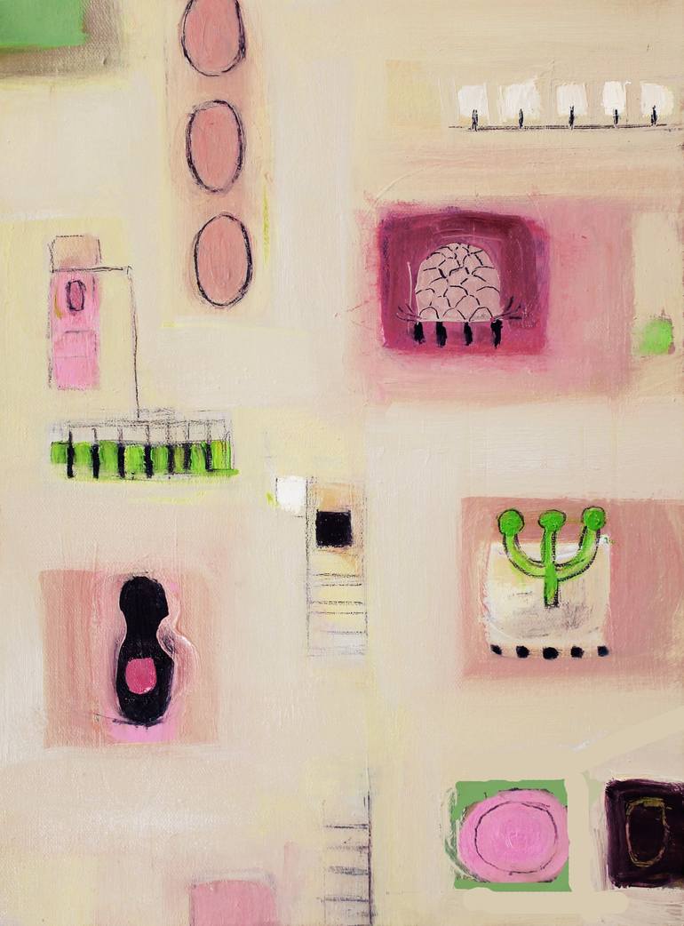 Ethel Vrana is an abstract painter from Ithaca, New York, whose work has been exhibited regionally in both solo and group shows. Her work is owned by collectors in the United States, England, Austria, Sweden, Australia and Japan. Vrana has been painting since she was 14, when she received her first professional set of oil paints for her birthday. Her interest in painting led to a BS degree in Fine Art and Philosophy from the University of Rochester. Early in her career, Ethel painted impressionistic landscapes which later evolved into abstract expressionism. Currently her abstract paintings are inspired by her interest in the spacial relationships of forms. Of her current paintings she says, "I am intrigued by the endless variety of compositional structures and evocative arrangements of shapes, lines, and colors.""