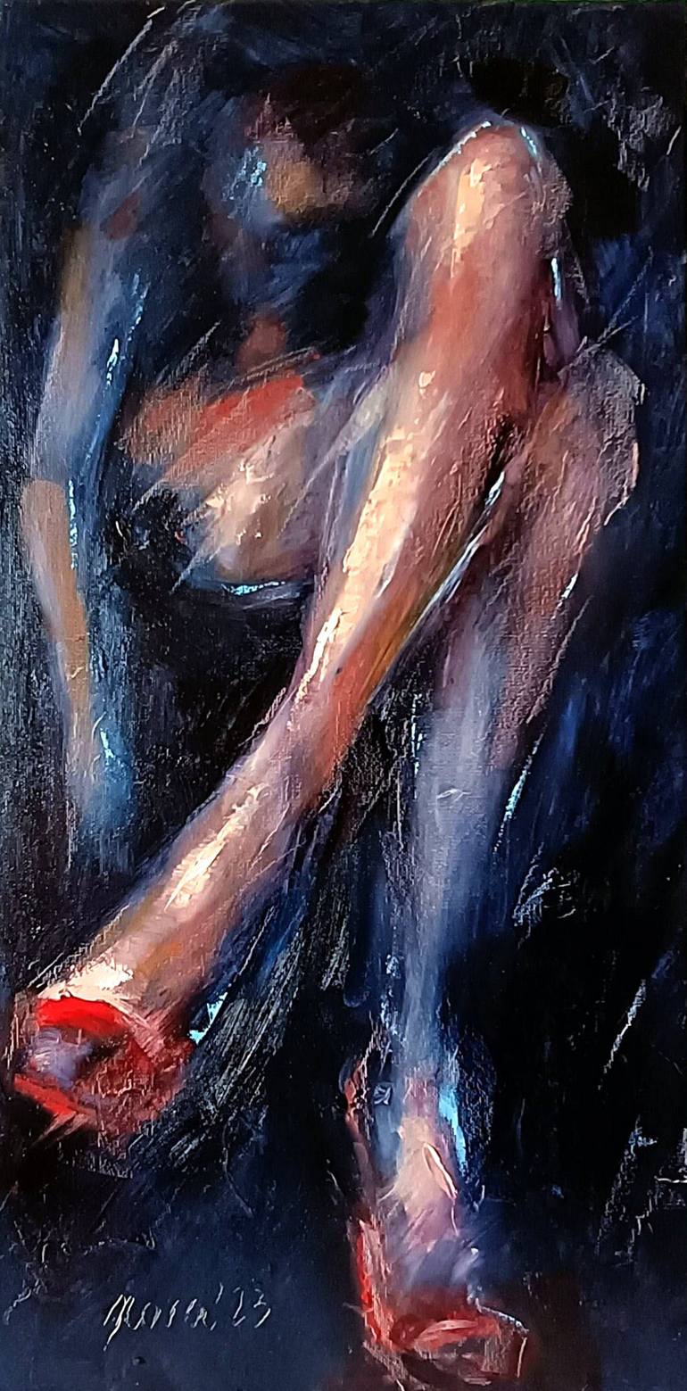 An artistic allure of "Red Shoes," an exquisite oil painting, captures the essence of feminine beauty and grace. This original artwork features a semi-abstract representation of the female form, highlighted by striking red shoes, a symbol of femininity and confidence. Each brushstroke conveys depth ...