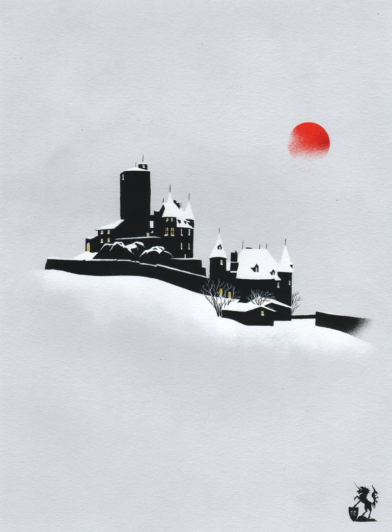 Winter landscape mixing occidental subjects and oriental inspiration.