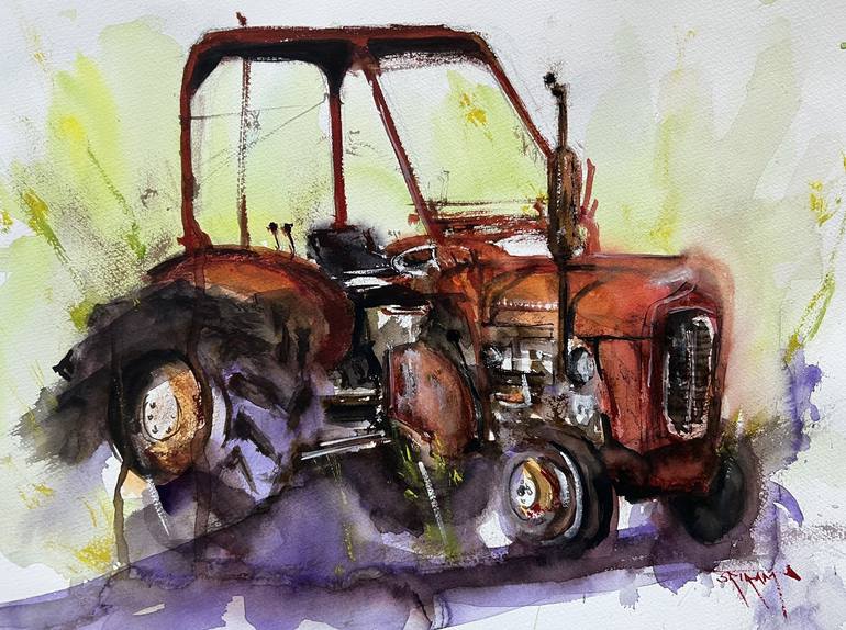A plein air of a Red Tractor at a farm nearby my home in Norway. I enjoy painting tractors outdoors and this is my 9th painting of a Tractor in the Plein air series. I love painting those big tryres and the long nose in particular and I do it in an abstract way with watercolours as it allows me to b...