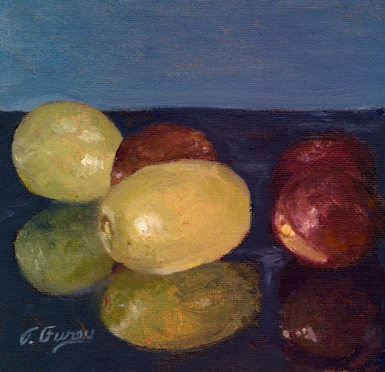Title: "Red and Green Grapes", Alla Prima Oil Painting on Panel, 6" x 6".
