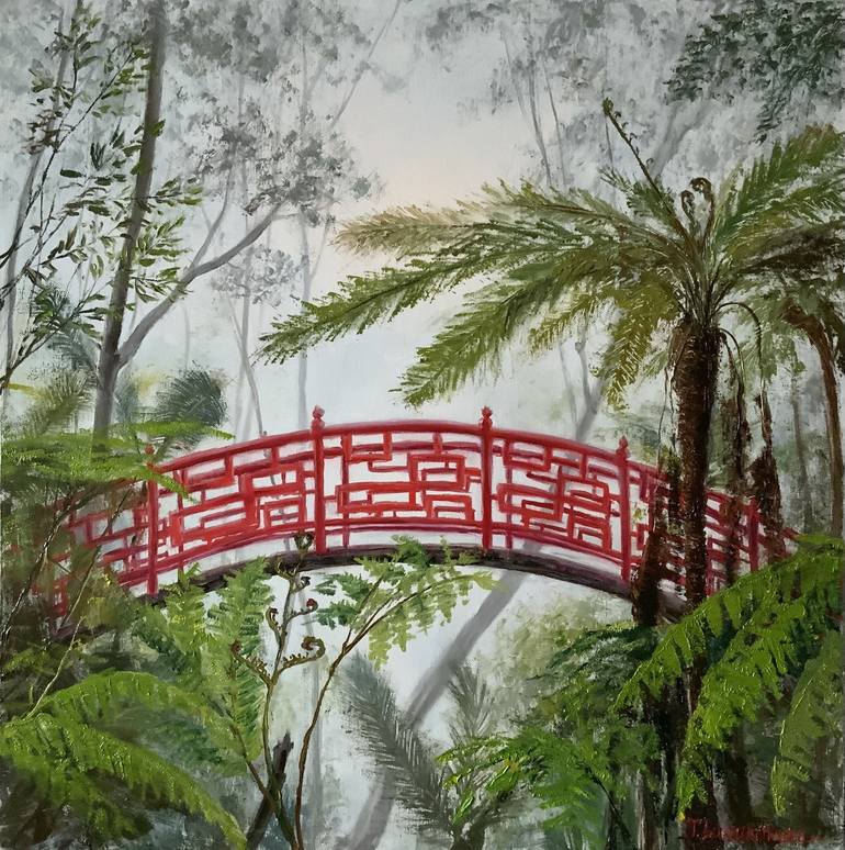 A vivid botanical composition inspired by the untamed rhythm of tropical flora. This piece captures the unspoken communication between plants - lush, vivid, unapologetically alive. Painted in oils the work invites you into a hidden jungle, where color and form pulse together in organic harmony.