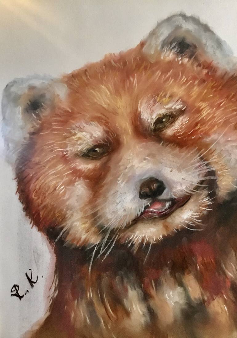 Red panda original soft pastel painting on specialized pastel paper,not framed