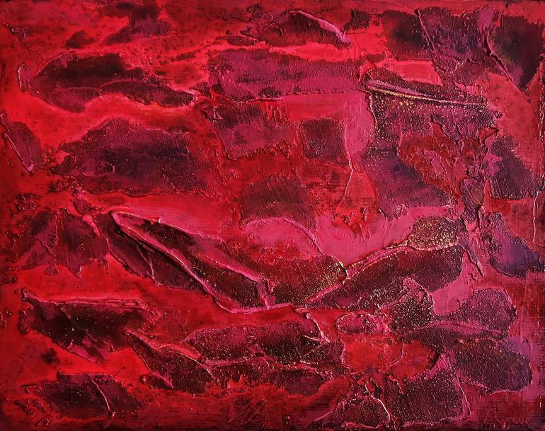 Red passion abstract minimalist art. 14x18cm, acrylic on canvas on cardboard. In this painting, I've immersed my soul into the vibrant, passionate depths of red to create a stirring abstract landscape. I used acrylics to shape an evocative terrain of emotions, capturing both tumult and tranquility t...