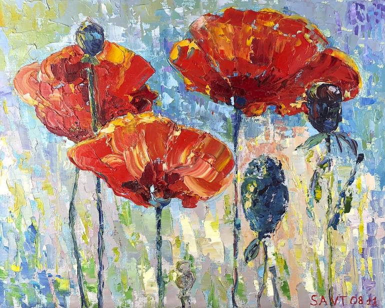 Poppies are very delicate, beautiful and independent flowers. I really like it when I see them paint the fields red. Often women like to draw poppy in my drawing lessons. And I understand them. My first oil painting was painted with poppies in 2009. The painting is painted in oil on canvas. I wou...