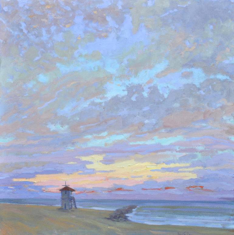 The evening skies over Redondo Beach can be awesome especially when the sun is obscured or has just dipped below the horizon. This one had a compelling spectrum of colors, and as I am interested in portraying Nature's glory dwarfing Man's structures, I got to work very quickly. The canvas is 30x30"...