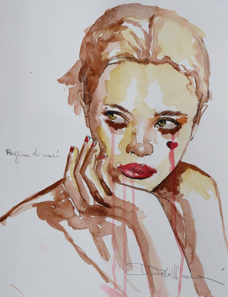Professional artist, graduated with Maxima cum Laude in 1998 at the Academy of Fine Arts in Perugia, Italy. Rapresenting Galleries. Imago Gallery Perugia - Italy -Galeria Gaudì – Madrid, Spain Immagini Italart—Cremona, Italy Paintings are in private collections in Los Angeles,Paris,New York, Moscow, Washington,Canada, Florida, California London,Nice,St. Louis, Portugal, Cyprus, Italy and so on.. She perfectioned her style in England where she lived for 5 years. She hence began to exhibit in Italy and abroad in prestigious private galleries and public places, immediately receiving important awards and the consensus of specialized critics. In March 2014 she received an award from the Director of the Selenograd Gallery in Russia and began to exhibit and sell her works worldwide. In her paintings, the woman is the central subject: protagonist in scenes of love, awaiting, passion, pain, abandonment, desire, perversion. Donatella defines her works born out of chaos, confusion and characterized by strong lines, quick, unfinished, scratchy. The artist seeks to evoke emotions, narrate situations and tell life stories using different means of communication and extremely varied between them such as oil, ink, pigments, glass, cement and coffee. “Her women talk about love and men … first of all of her father who enrolled her at the Academy and now, although he is no longer, he fully participates in her creations being her memories fixed on canvas by the use of cement. Her father… a mason… a man… the first whom understood, her first true supporter. To him, the works letters of coffee are dedicated where the artist tells of herself and intimately opens to him. Her first exhibition dates back to 1997 and since then until today numerous personal and collective exhibitions have followed in galleries and museums in Italy and abroad