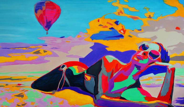 Cities of Sunlight. Relax, playa, sol y viajar con nuestra mente hacia momentos placenteros. Mientras se trabaja en el estudio de arte en el preciso momento de una gran tormenta afuera del taller la artista ha creado esta pintura, tal vez para traer un poco de sol al taller. Original Created: 2022 S...