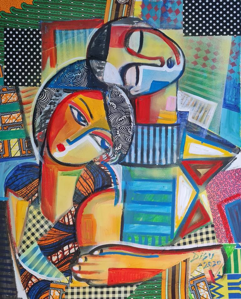 Dada Adesoji Disu a.k.a. “DISU”. Born in 1968, On the Island of Lagos,Lagos state,Western Nigeria.He attended school of Art and Design Auchi Polytechnic and Telford college of art and technology,England. United KingdomHe was resident Artist National Gallery of Art Nigeria from 1997-2001.A former fine art teacher with Chalawa Secondary School,Kaduna State,Northern Nigeria. Member of Southwark art forum England.He has had numerious private and Public art commissions back home in Nigeria( He was more a Community Artist in Nigeria) and had several group exihibitions ever since arriving in the United kingdom.His Works are in private collections in Nigeria,Qatar,South Africa,U.S.A, Denmark, Canada, United Kingdom,Germany. He is a multi media artist. Also, his works are influenced by his African yoruba background which is mostly decorative, heavily patterned motifs and colourful tend to neutralise dominating gray surroundings. There is empharsizes on head ( Ori- Destiny).The size of the head is the artistic visual interpretation of what the future holds. In Yoruba culture and belief system , head is where authority and reasoning come from,therefore,your success in life depend on how you make good or bad use of your head.The head is considered bigger than the rest of the body because is essence of man. Therefore the burden it bears makes it bigger.Our heads constituting our life-source and controlling personality and destiny. Three different modes of representing the head are identified in Yoruba aesthetics : the naturalistic, which refers to the external, or physical, head (orí òde); the stylized, which hints at the inner, or spiritual, head (orí inú); and the abstract, which symbolizes the primeval material (òkè ìpòrí) of which the inner head was made. Although the fate of each individual is believed to have been predetermined in heaven before birth "into" the earth, a good or bad destiny is no more than a potentiality for success or falure; a successful life depends on how well one makes use of one's head here on earth. The prominence given to the head in Yoruba aesthetics is thus a reflection of its sociobiological importance as the coordinating center of human existential struggles. His recent project which was conceived and curated by Phil Growick.the author of “The secret journal of Dr Watson”, is a book cover for Sherlock Holmes novel entitled: The strange Case of Violin Savant by Gregg Rosenquist.