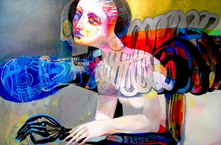 Victor Tkachenko, lives in Toronto, Canada. Victor received professional art training beginning at age ten and was one of few graduates to complete the extensive and rigorous program from the well-renowned Art School in Krivoy Rog, Ukraine. Working primarily with acrylic on board Victor displays a mastery of line and colour through purposeful brushwork and a palette dominated by rich earth tones thickly applied to the ground. The physicality of his work is enhanced with accents of ink and, intermittently, the addition of industrial materials such as varnish and plaster. Throughout the various stages of his work, Victor’s figurative forms are drafted with elongated lines, exaggerated features and geometric patterns. While early paintings are recognizable for their use of solid line and bold colour that refer to Byzantine mosaic work or stained glass, his oeuvre is grounded, broadly, in symbolism and expressionism. Dominating his art are planes of soft light which intersect and overlap, objects and figures emerge from a dreamlike atmosphere of harmonious colour while emotion and meaning are conveyed masterfully through bold pattern and vivid line. Victor’s work can be found at galleries and private collections all over the world.