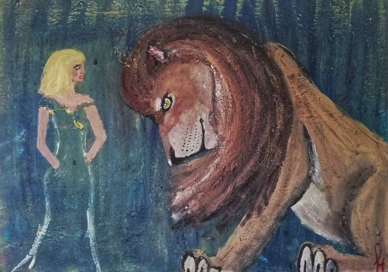 In the painting "Respectful" you see a lion bowing to the woman opposite him. The lion bows to the lady in the green dress for what she had conquered. He respects her strength and power. This is his way of showing that I respect your obstacles, I see your strength rise, your light goes on and I hea...