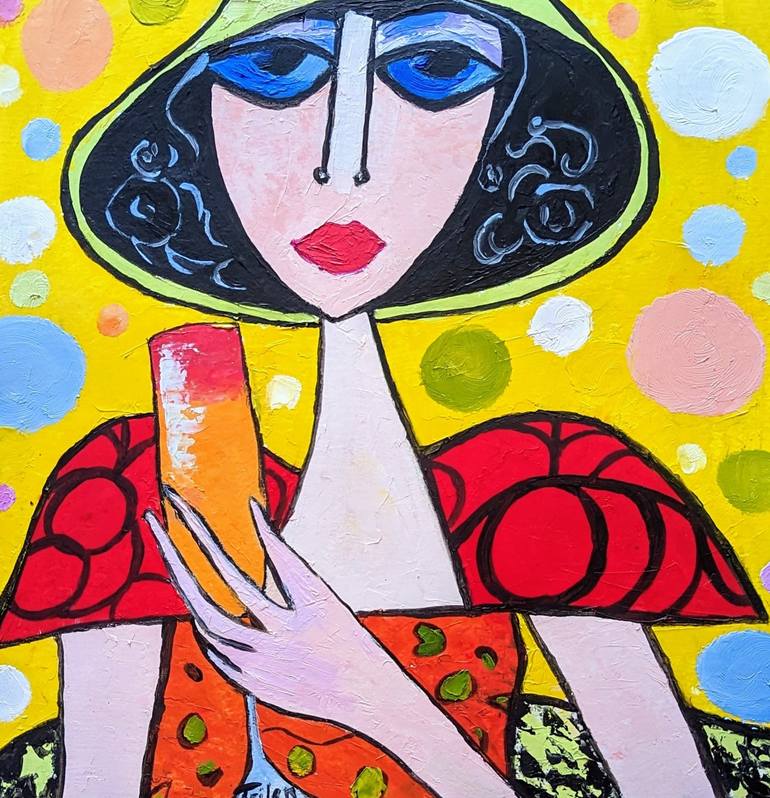 I continue to paint the club collection. This series of 5 paintings is called "Girl with a glass". Introducing the "Retro Girl with Champagne". This painting will look good in a bar, cafe or kitchen. The finished painting is framed in a passepartout and a frame under glass. Passepartout, like a whi...