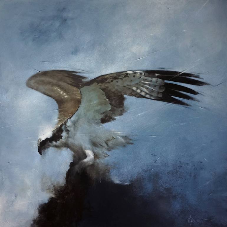 A painting depicting the power and communion between this magnificent raptor and tempestuous sky
