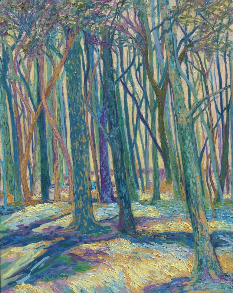 In my work I use colors and texture to evoke the emotional quality of the subject matter. Everything I visually experience has hidden layers of meaning to me, so the woods as well as people are evidence of the sacredness of life. I paint in my studio in the Cumberland mountains of Tennessee where the past seems to seep into the present with colorful, expressive images.