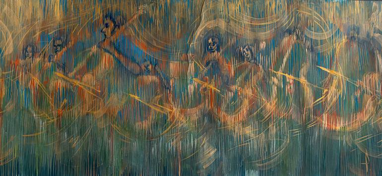 This painting is part of the "SYNESTESIA" series. The themes emerged from drawings made during the concerts of the Symphony Orchestra of the Teatro Nacional Cláudio Santoro. In the colors of the piece "RHAPSODY IN BLUE" by the composer GERSHWIN. Watercolor on RAG 100% cotton paper