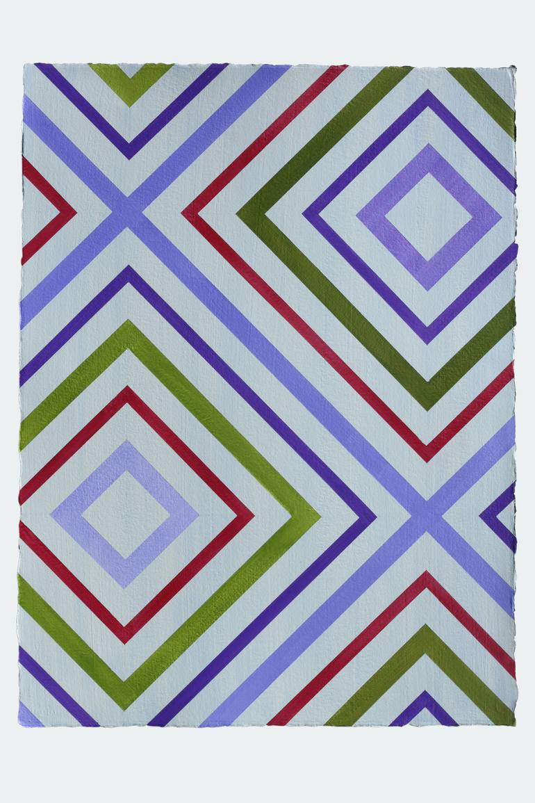 Just like Josef Albers developed his Homage to the Square painting variations, this is the second painting in a series in which I will be exploring color juxtapositions and variations based on the limited structure of nested rhombuses, similar to the “God’s eye” designs of colorful yarn weavings cre...