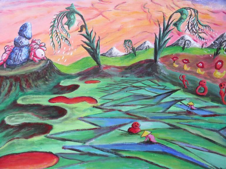 Cette peinture a été inspirée par la crise du riz conséquence de la spéculation virtuelle sur les marchés financiers. This painting was inspired by the rice crisis due to financial market speculation
