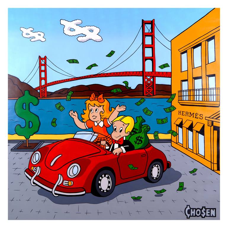 My work represents a contemporary reinterpretation of the legacy of iconic pop art masters, infused with my own conceptual perspective. Each piece draws upon the visual language of Andy Warhol’s cultural symbolism, Roy Lichtenstein’s graphic narratives, the layered collages of Robert Rauschenberg, the raw expressiveness of Jean-Michel Basquiat, and the dynamic spontaneity of Jackson Pollock, while weaving in a multitude of other cultural references. I explore the tension between opposites, merging rare vintage materials — such as mid-20th century newspapers, comic books, and stock certificates — with modern artistic media including spray paint, acrylics, markers, and inks. Accents of gold leaf, authentic banknotes, and epoxy resin elevate each composition into a multidimensional art object. Within my visual universe reside distinctive characters of my own creation, inspired by and evolving from well-known comic book icons. This synthesis of influences, materials, and personal invention results in works that are immediately recognizable, unmistakably original, and singular in the global art landscape.
