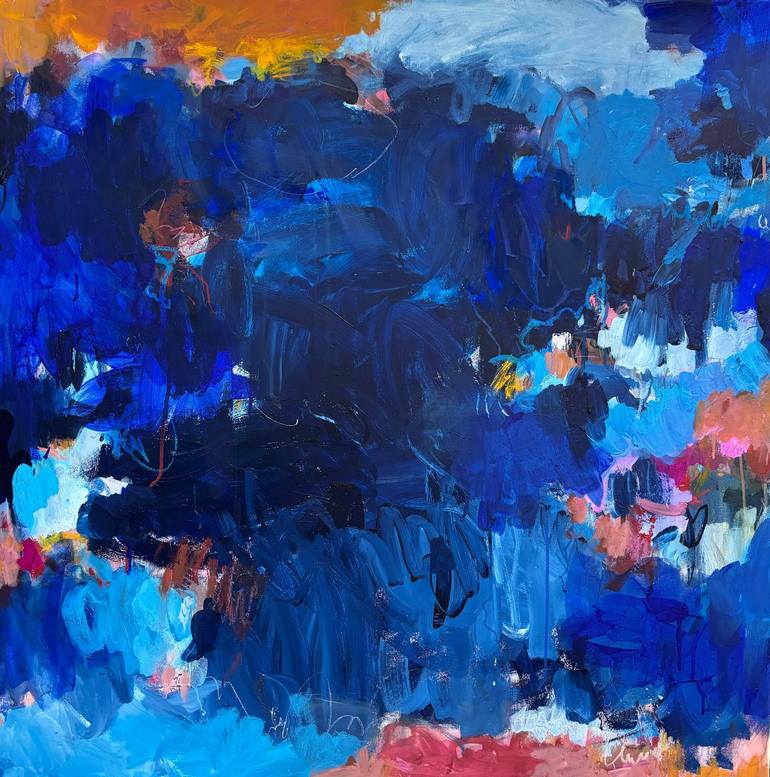 This dramatic, blue abstract painting has been built over many layers of paint and grew out of a slow process. I enjoyed bold brushstrokes and more detailed mark making in this expressive piece. The starting point for this piece has been the colour scheme and an external representation of an inner l...