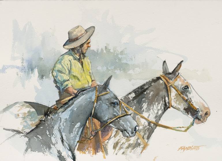 My watercolors try to convey the labor of the gauchos* as well as the life and landscape of my beloved homeland, Uruguay. * Uruguay’s traditional rural workers