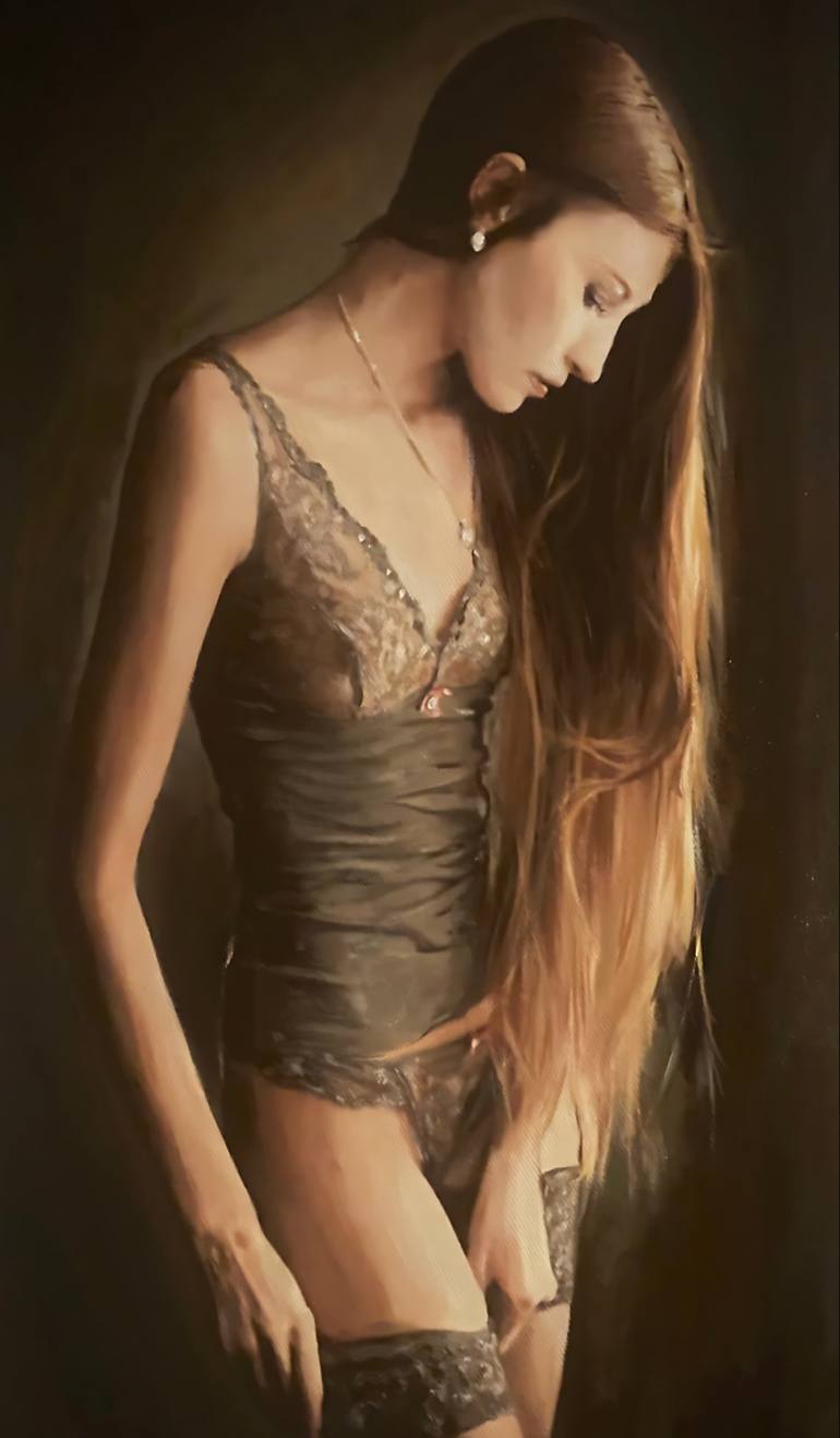 Oil on canvas, framed to Guild of Framers Museum Standard. 17"x10.5" approx. plus frame size.