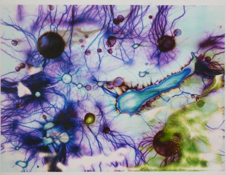 The artist created this image using electricity (up to 30.000 Volts), a variety of different chemicals and painting mediums, ... . In order to use electricity as a painting medium the artist developed a new painting method that gave him the opportunity to actually compose the image and to paint with...
