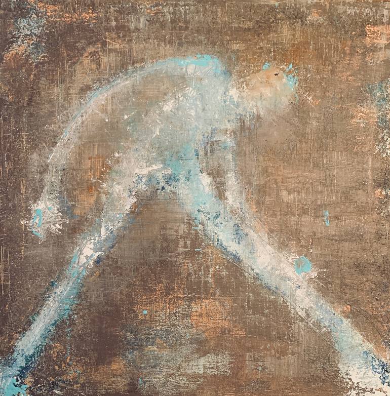 Figurative artwork on abstract background. My long and thin figures were first inspired by Giacometti's sculptures. I use a texture (sand, chalk) to create an abstract background.