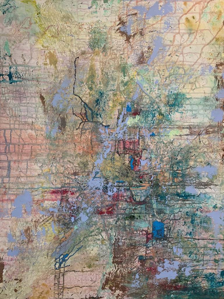 Rites of Unrest is an abstract acrylic painting on canvas reminiscent of a topographic drawing. The subtle flowing colors contrasted with the pops of color will draw the viewers in, giving them energy. At the same time, they will feel calm. Your eyes will find new moments to focus on each time you w...