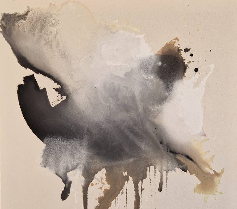 In my newest works, I use raw canvas. Kneeling or standing over the large blank pieces, I pour out the paint directly onto the fabric. I play with pictorial depth by building up veil-like layers of colour that coalesce into amorphous forms. Soft washes with wispy, feathery edges are paired alongsid...