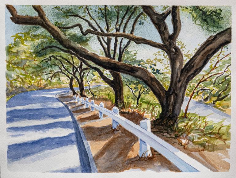 The winding road to Will Rogers Park in Los Angeles. Painted on location with quickly changing light. And it's framed!