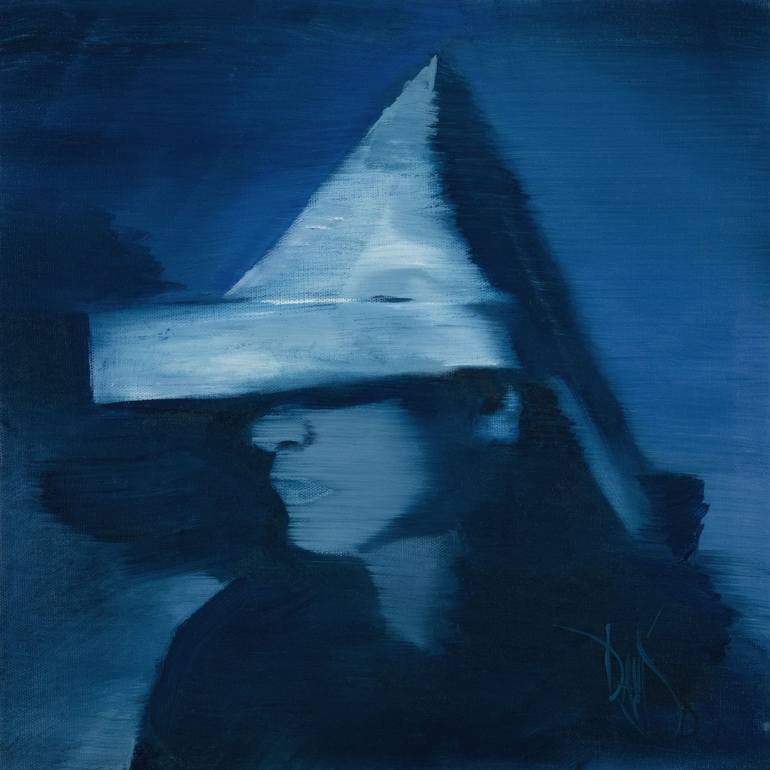 This portrait does not aim to represent Robert Filliou literally, but rather to evoke his legacy through a metaphorical image. Inspired by a photograph of an anonymous man wearing a folded paper hat, the painting alludes to the "Galerie Légitime" (ca. 1962–1963), a portable gallery installed in Fill...