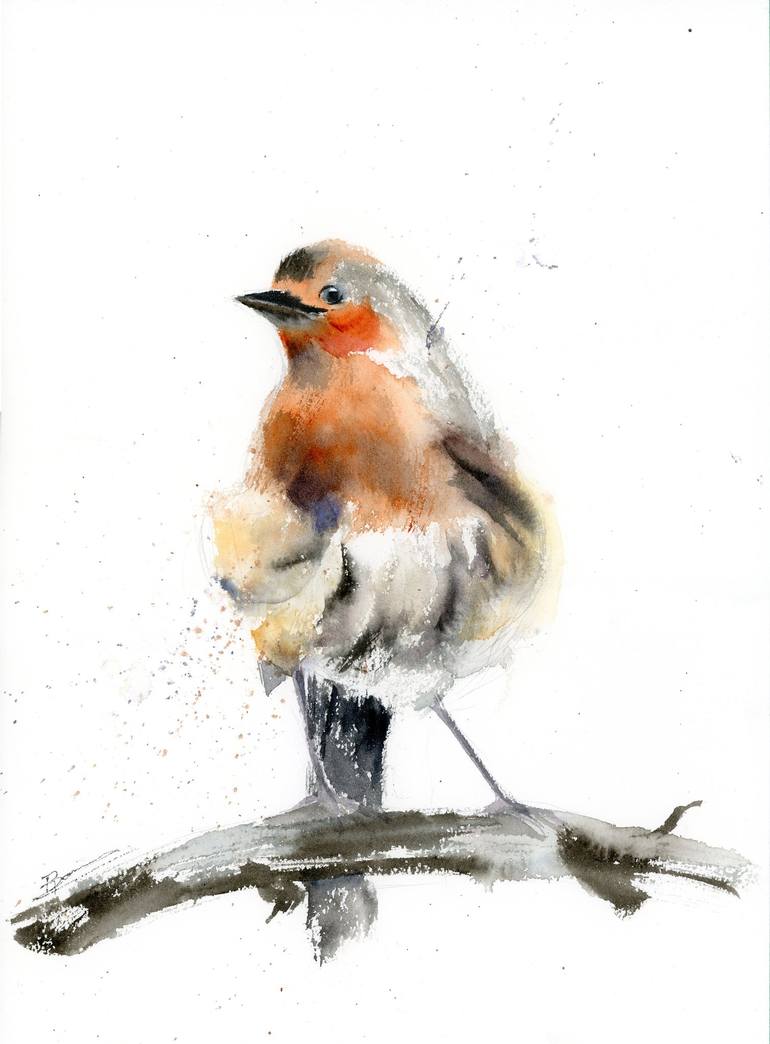 This original watercolor painting captures the delicate beauty of a European robin, perched gracefully on a branch. Painted in 2021 by Olga Tchefranov, this piece blends soft washes and expressive brushstrokes to create a sense of lightness and movement. The warm, earthy tones of the bird’s plumage ...