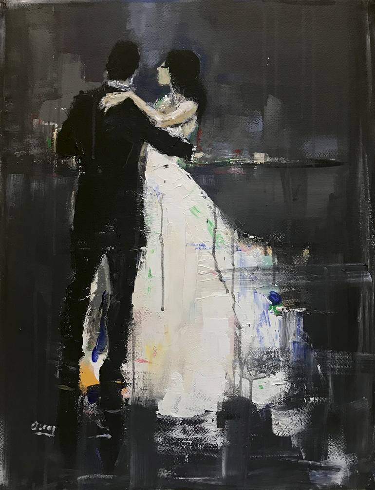 Romantic scene painted in acrylic on paper "Arches" 300 grs. In all my paintings, I use materials and means of the highest quality, resistant to light and the passage of time.