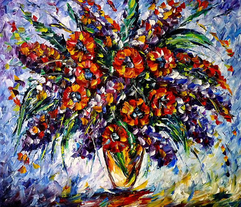 I was born on 12 August 1968 in Boleslawiec, Lower Silesia (Poland). Since 1981 I live in Heilbronn, Germany. Mainly I paint with palette knife and oil paints. Certain motifs return in my paintings again and again. Landscapes, city scenes and lovers walking hand in hand. Animals, mothers with children and older people also accompany my canvases. My paintings are characterized by a greatly reduced color palette, which still appeals to the viewer as very lively. It is not important to me to represent everything correctly. But much more, a monotonous scene to transform into a colorful life with fast palette knife work. A cold gray landscape turns flaming yellow and red.