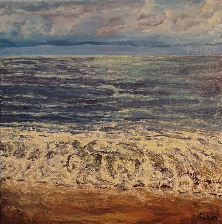 Romper la orilla is an oil painting on canvas on a wooden stretcher. The work is satin varnished. It corresponds to a very remembered and repeated image. Constant. The moment when the sea approaches the shore and breaks into foam on contact with the sand, again and again, in continuous movement. In ...