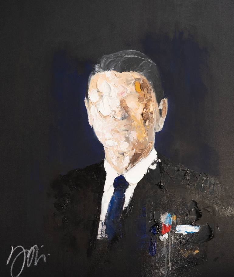 Title of artwork "Ronald Wilson Reagan" Mixed media with spray paint Painted on canvas. size F20 727mm × 606mm unique original Floater wood open back framed Ready to hang Information Color Project Art management