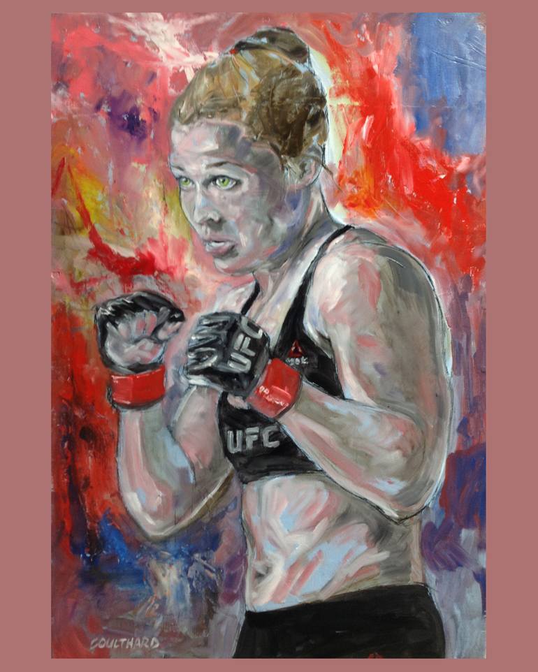 Using loose, fast colourful brush strokes I've captured the stare and strength of the UFC fighter Ronda Rousey.