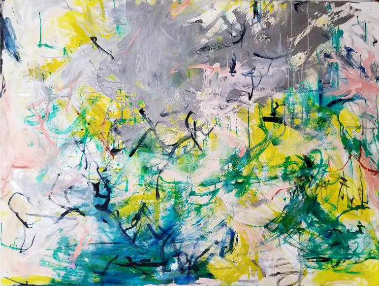 As an abstract painter I am interested in what happens in the world of a painting when serenity is invaded by a chaotic jumble of randomness. There is a moment, or a series of moments that are pivotal in the creation of a painting... perhaps the same can be said, in the creation or living of a life. In that spirit I am pouring, scraping and blotting paint, creating a kind of managed chaos. After the rush of adrenaline subsides, it is then my job to meditate on the results and work with them until the painting feels "right." I want the marks on the canvas to talk to each other, for the layers to interact, for the process of how the painting was built to be apparent.