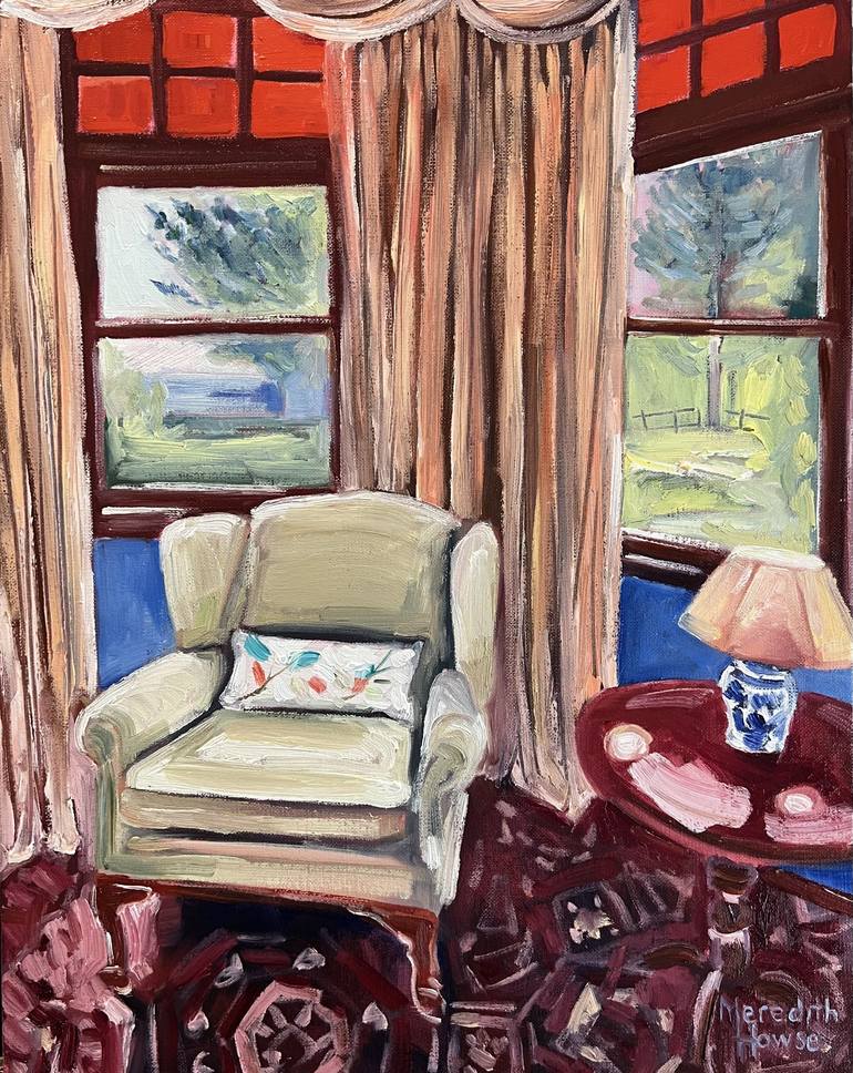 Inspired by the interior of Blair Athol historic home in Inverell comes this colourful painting of the unique, bespoke formal drawing room. The rich red carpet a symbol of elegance and glamour, whilst the blue wall brings peace and tranquility to the room. Comes with a signed Certificate of Authenti...