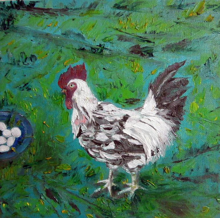 Inspird by Rooster Year in 2017 Signed at the back, ready to hang on the wall.