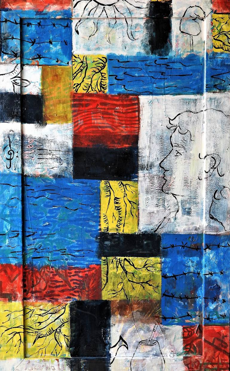This picture is painted on an old picture with wood frame. It depicts elements from my childhood in Argentine, between periods of civil and military governments. I began to paint at a workshop according with the Constructivist style of Uruguayan painter Joaquin Torres-Garcia : oil painting, wall pai...