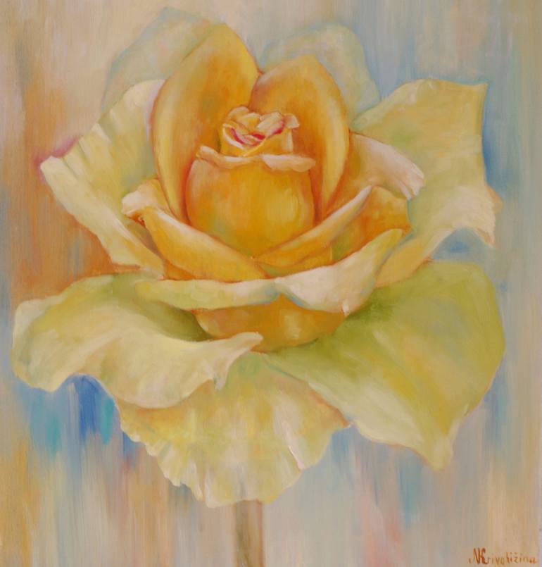 I like roses very much. There are many roses in my garden. One of them is the beautiful rose "St. Patrick". The painting was done on canvas with oil. Written by a brush.