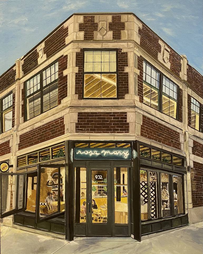 "Rosemary" is an original oil painting that captures the essence of a beloved restaurant in Chicago's vibrant Fulton Market neighborhood. The artist's realistic style brings the architecture to life on canvas. This fine art piece would be a wonderful addition to any space. Its inviting subject matt...