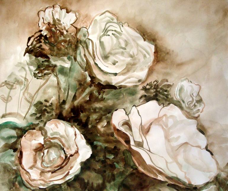 This original watercolor painting, titled "Roses," captures the delicate beauty of a floral bouquet. The artist's impressionistic style brings the roses to life on paper. The artwork embodies elements of realism, fine art, and illustration, documenting the fleeting beauty found in nature. Inspired ...