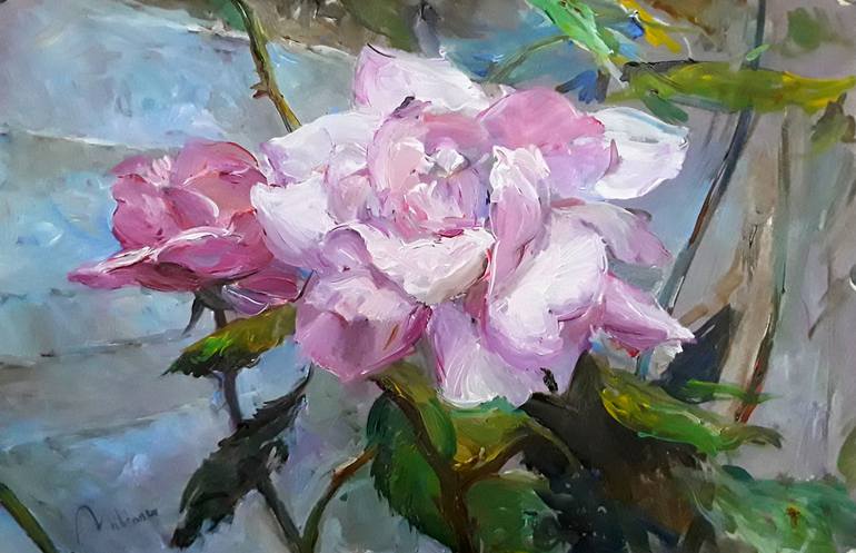 May. Roses on the wall. Oil on Canvas board.Cm 43 x 28