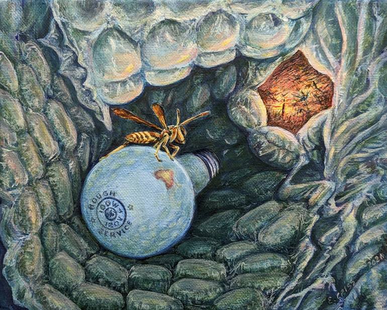 Rough Service, my still life of a wasp guarding her home, comes with complementary bubble wrap. Please recycle.