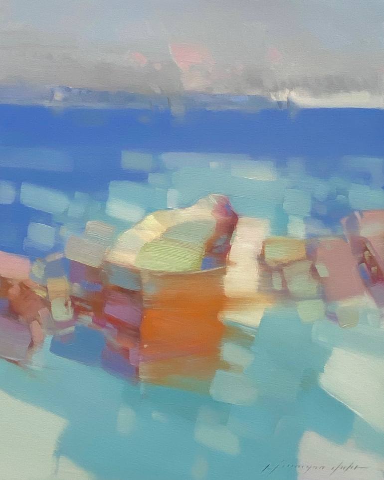 Artist: Vahe Yeremyan Work: Original Oil Painting, Handmade Artwork, One of a Kind Medium: Oil on Canvas Year: 2022 Style: Impressionism, Subject: Rowboat, Size: 22" x 17.5" x 0.8'' inch, 56x44x2 cm, Unframed, Stretched on Wooden Bar, Gallery Wrapped, Ready to Hang. Yeremyan is an American A...